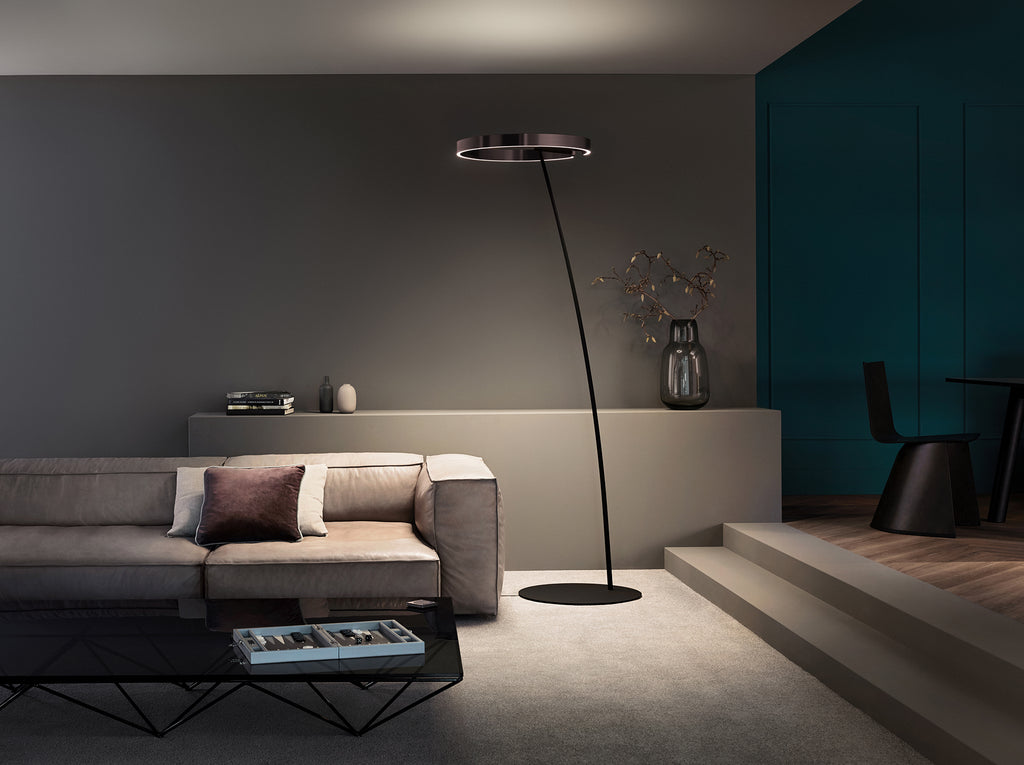 Die elegante Stehleuchte MITO RAGGIO ist ein wahres Lichtwunder für jeden Raum. Kraftvoll setzt sie Wohn- und Loungebereiche in Szene. Intuitive Features wie »color tune« oder »up/down fading« machen das Lichterlebnis vollkommen. Ein zusätzlicher »touch sensor« am filigranen Carbon body ermöglicht eine bequeme Bedienung direkt an der Leuchte.